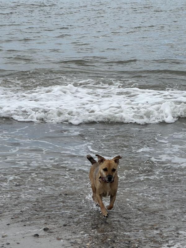 Bei Autofahrten verhält sie sich ruhig und ist auch mit Arrtgenossen verträglich.